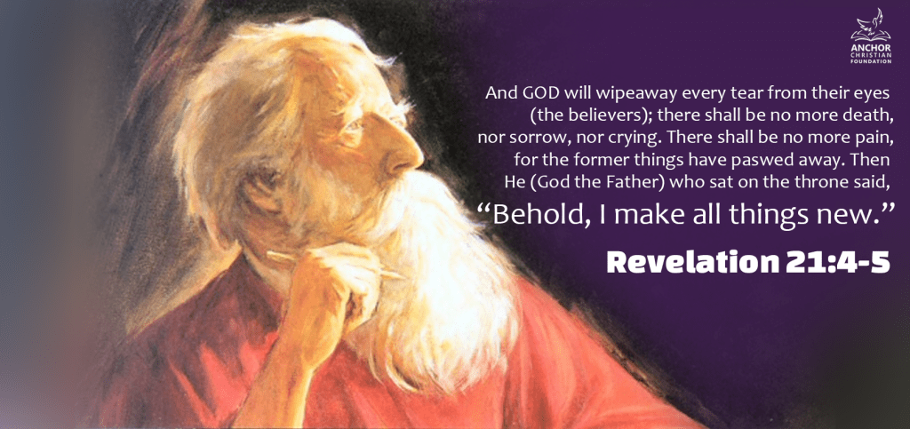 It’s verse 5 that triggered me most. It came as though the Father is saying, “It’s alright. My children, everything is new and fine now. Just settle down and let’s fellowship for eternity. I have ensured that nothing will ever disrupt our fellowship again. It is over!” That is my paraphrase.