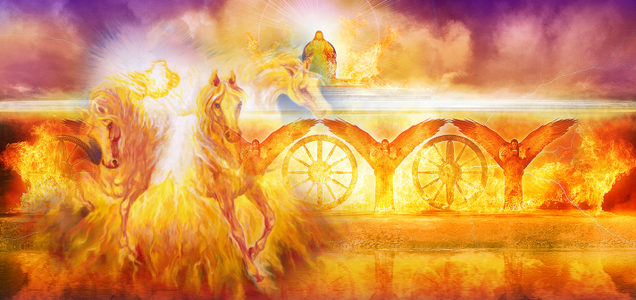 Clouds and darkness surround You; great clouds with raging fire engulfing it with radiance like the color of amber, out of the midst of fire. You clothe Yourself with fire. The Ancient One.